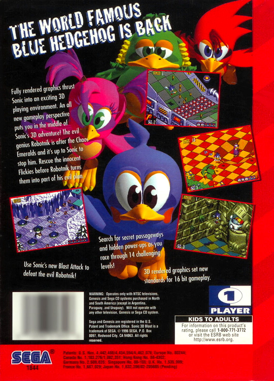 Q: Зачем гнаться за трёхмерностью и приносить ей в жертву ураганный геймплей? A: Хороший вопрос. Скорее всего, просто стремление не отставать от времени и удивить всех "трёхмерной" графикой на Sega MD. Кстати, игру делала команда Traveller's Tales. Она же приложила свои усилия к довольно удачной "Sonic R". |