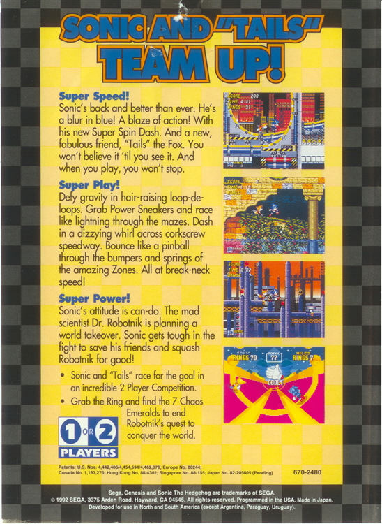 >>> После громкого успеха первой части продолжение не могло не появиться на свет. И вот оно появилось. Первое, что бросается в глаза, - новый персонаж лисёнок Майлз Прауэр по прозвищу "Теилс". Его появление двояко сказывается на процессе игры. С одной стороны, лисёнок в трудную минуту может выручить Соника. Ведь Теилс неуязвим. Так можно всех боссов легко в дугу скрутить. С другой стороны, в бонусных уровнях он часто спотыкается о мины и теряет необходимые кольца. Уровней стало больше. Роботник стал ещё опаснее. Игра стала ещё интереснее. Особенно радует финальная битва, когда ты остаёшься один на один с доктором и у тебя нет ни колец, ни помощи от Теилса... Уверяю вас, после того, как вы наконец одержите победу, вам захочется кричать не своим голосом: "Я СДЕЛАЛ ЭТО!" В общем, практически идеальная платформенная аркада. Оценка: 10 из 10. Colonel Shephard. >>> Мини-обзор производной "Knuckles in Sonic The Hedgehog 2". Такая "производная" получается при вставление картриджа Sonic The Hedgehog 2 в лицензионный картридж Sonic & Knuckles. У вас появляется возможность играть Наклзом в Sonic The Hedgehog 2. Увы, в отличии от "стыковки" с Sonic The Hedgehog 3, план уровней не изменяется и вы играете фактически в ту же вторую часть сониковской серии для Sega MD, только новым героем. Сложность, правда, сильно возрастает, поскольку Наклз довольно неуклюжий и медленный. Впрочем, игру это нисколько не портит. Colonel Shephard. Добавить обзор >>> |